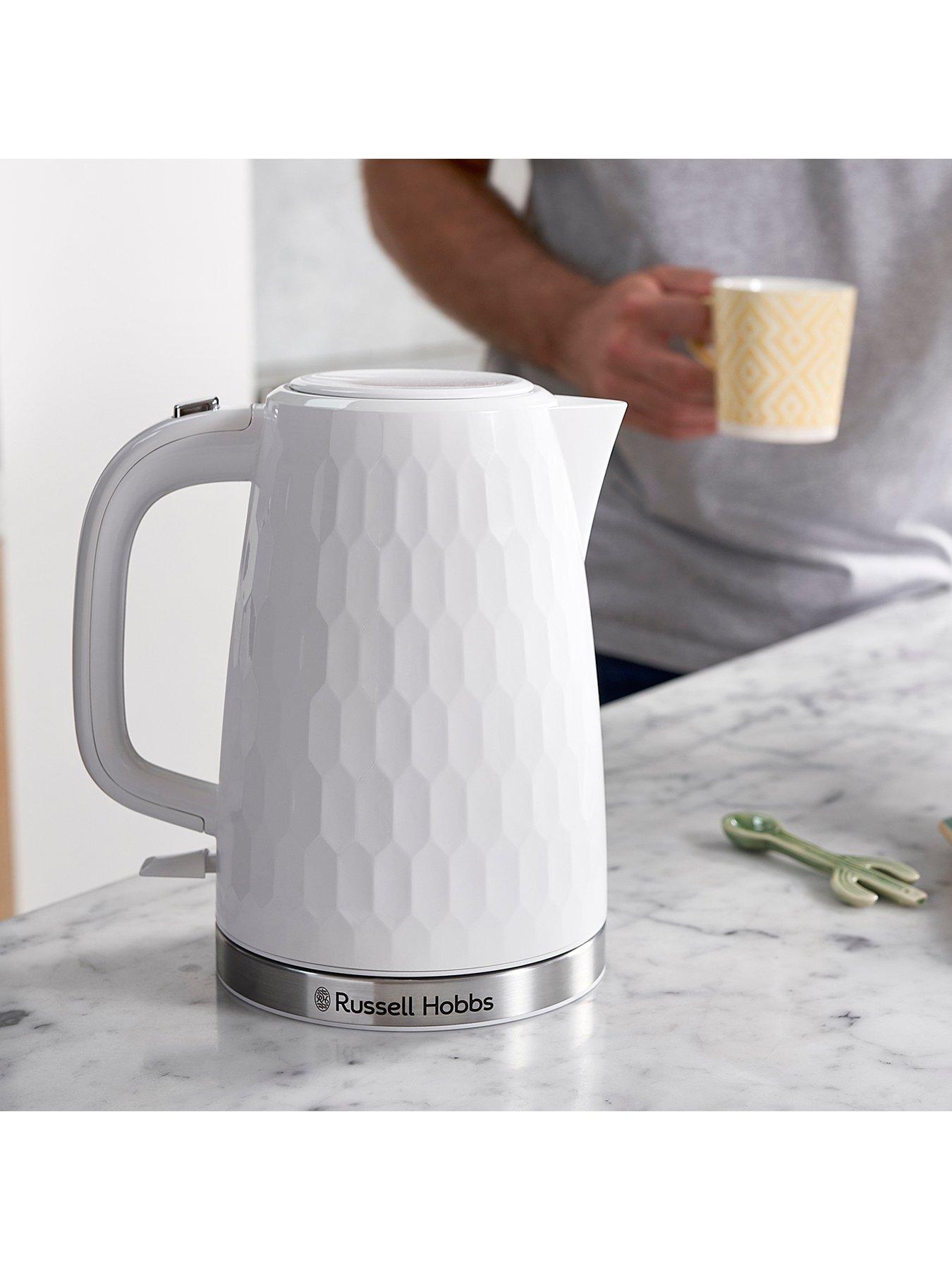 Honeycomb white kettle russell hobbs uk make a statement with this kettle s honeycomb inspired design and stainless steel accents restyle your kitchen without breaking the bank. Coronavirus the latest updates from russell hobbs find out more. With a 1 7 litre capacity there s more than enough room to make up to 7 cups of tea or coffee at once. Thank you for registering your product with russell hobbs.